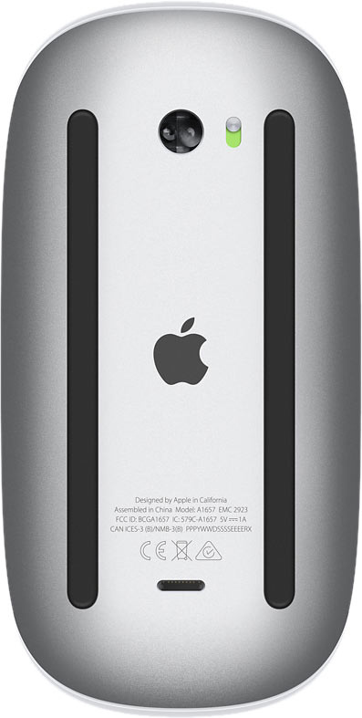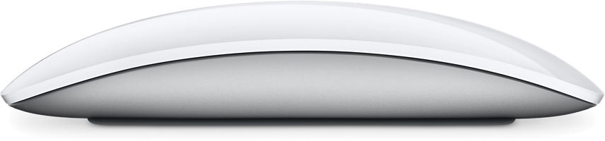 Беспроводная мышь Magic Mouse работает от встроенного аккумулятора и легко скользит по рабочей поверхности благодаря цельному основанию. Её поверхность Multi-Touch поддерживает простые жесты, например, позволяя переходить между веб-страницами и прокручивать документы с помощью смахивания.