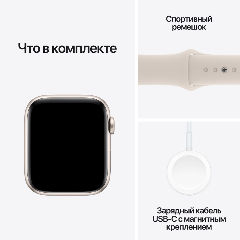 Apple Watch SE 2023, 44 мм, корпус из алюминия цвета «сияющая звезда», силиконовый спортивный ремешок цвета «сияющая звезда»
